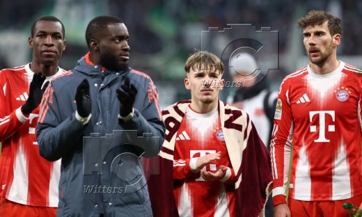 Schlussjubel v.l. Nicolas Jackson, Dayot Upamecano, Lennart Karl, Leon Goretzka (Bayern)