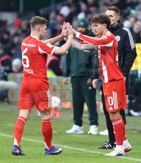 Schlussjubel v.l. Lennart Karl, Leon Goretzka (Bayern)
