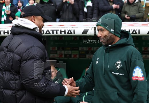 v.l. Trainer Vincent Kompany (Bayern), Trainer Daniel Thioune (Bremen)
