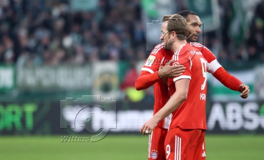 v.l. Torwart Mio Backhaus (Bremen), Harry Kane (Bayern)