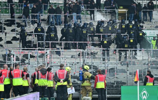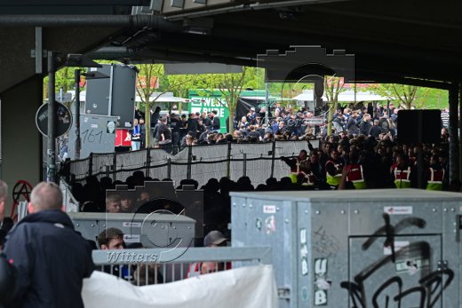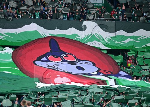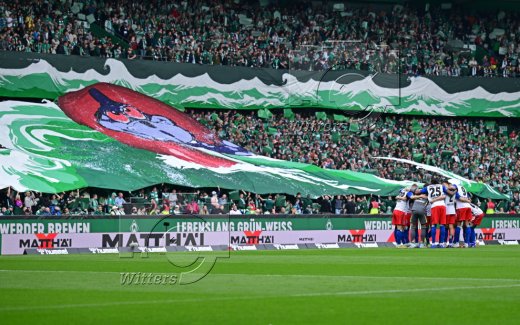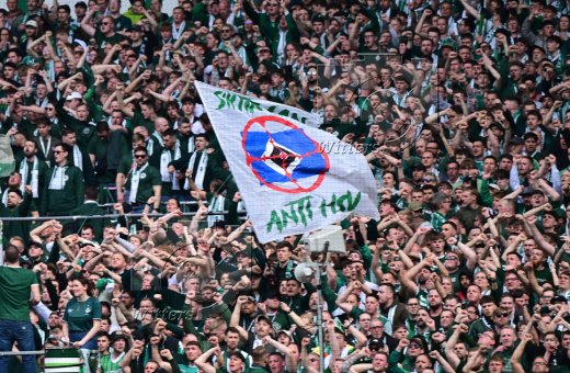 Fans Werder schwenken HSV Fahne mit Fadenkreuz