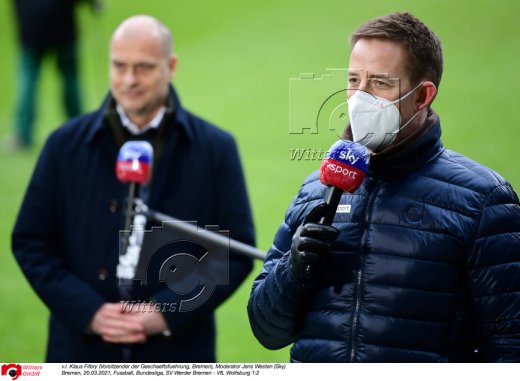 v.l. Klaus Filbry (Vorsitzender der Geschaeftsfuehrung, Bremen), Moderator Jens Westen (Sky)