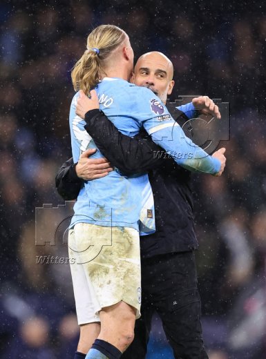 Schlussjubel, v.l. Erling Haaland , Trainer Josep "Pep" Guardiola (Manchester)