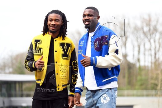v.l. ibrahima Konate, Dayot Upamecano bei der Ankunft