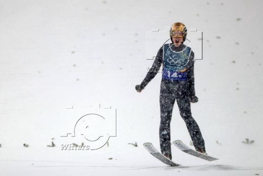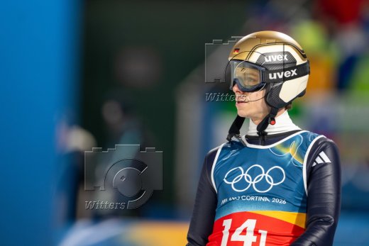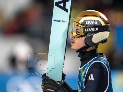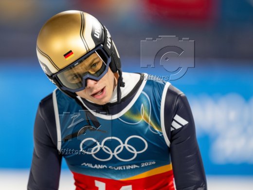 Predazzo, 16.02.2026, Olympische Winterspiele Milano Cortina 2026 (Mailand und Cortina d'Ampezzo / Italien), Skispringen, Herren, Training, GrossschanzeGermany Only