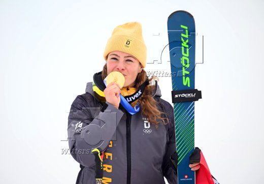 v.l. Fanny Smith (Schweiz, Silber), Olympiasiegerin Daniela Maier (Deutschland, Gold)