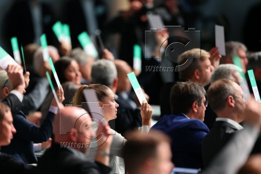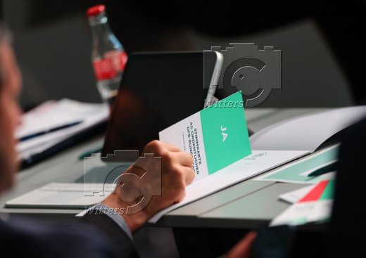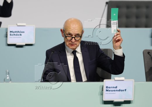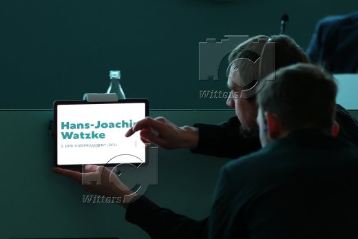 v.l. DFB-Praesident Bernd Neuendorf mit Stimmkarte