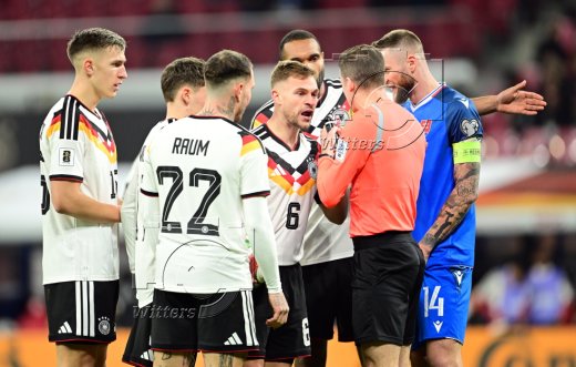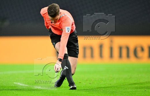 v.l. Nico Schlotterbeck, David Raum, Joshua Kimmich (Deutschland), Schiedsrichter Francois Letexier (Frankreich), Milan Skriniar