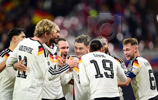 4:0 Tor, Jubel v.l. Aleksandar Pavlovic, Nick Woltemade, Jonathan Tah, David Raum, Florian Wirtz, Torschuetze Leroy Sane, Serge Gnabry, Joshua Kimmich (Deutschland)