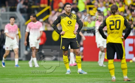 v.l. Jobe Bellingham, Marcel Sabitzer (Dortmund) nach dem 0:1 Tor
