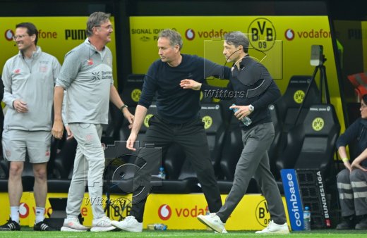 v.l. Trainer Kasper Hjulmand (Leverkusen), Trainer Niko Kovac (Dortmund)