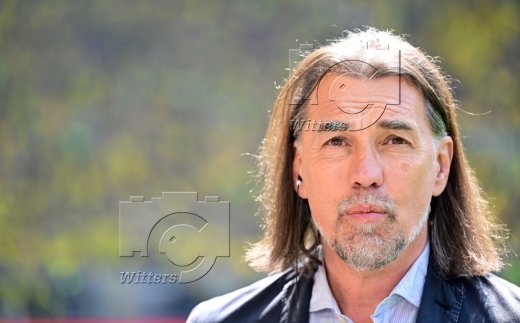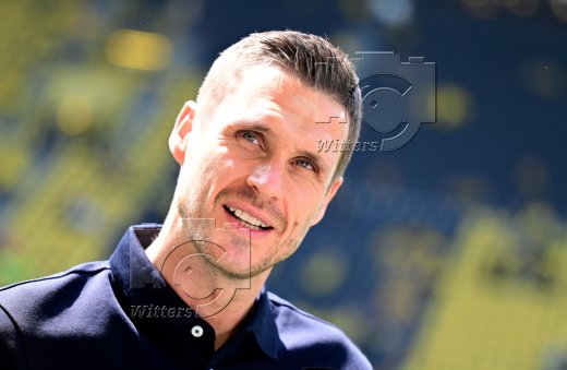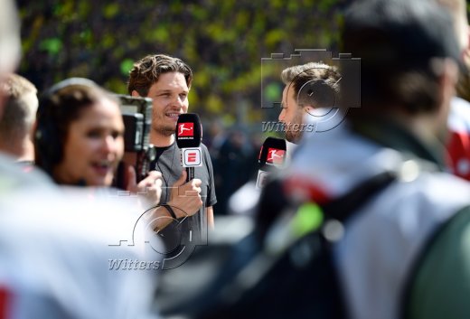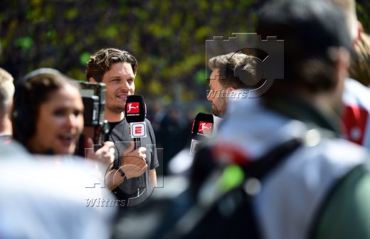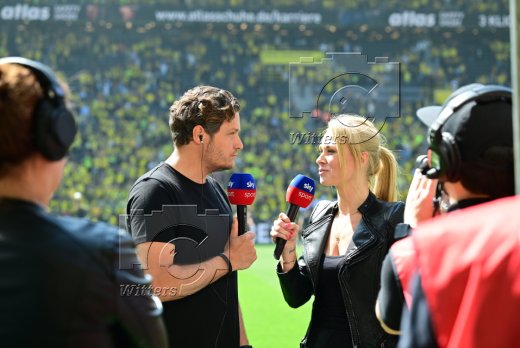 v.l. Trainer Edin Terzic (Dortmund), Moderatorin Britta Hofmann (Sky)