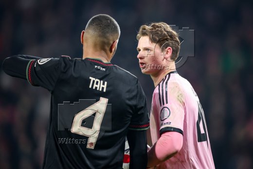 v.l. Jonathan Tah, Torwart Jonas Urbig (Bayern)