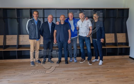 v.l. Sven Marr (Administrativer Leiter NLZ), Hermann Schulz (Leiter Infrastruktur HSV e.V.), Selim Nallar (Logoo-Logistik GmbH), Horst Hrubesch (Direktor Nachwuchs, HSV), Michael Voloschin, Kumar Tschana (Geschaeftsfuehrer, Fussball Hamburger SV e.V.)