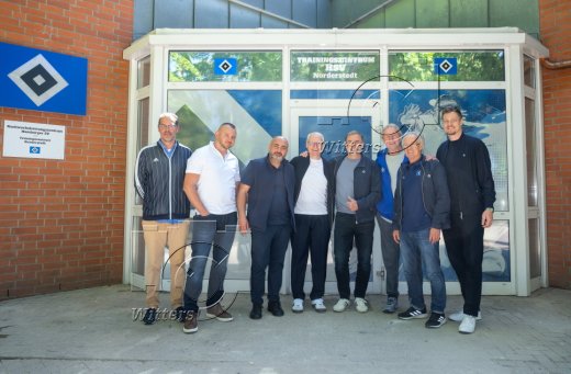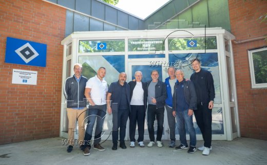 v.l. Sven Marr (Administrativer Leiter NLZ), Michael Voloschin, Selim Nallar (Logoo-Logistik GmbH), Michael Papenfuss (Vizepraesident und Schatzmeister, HSV), Stefan Kuntz (Vorstand Sport, HSV), Horst Hrubesch (Direktor Nachwuchs, HSV), Vizepraesident Bernd Wehmeyer (HSV. e.V.), Praesident Marcell Jansen (HSV e.V.)