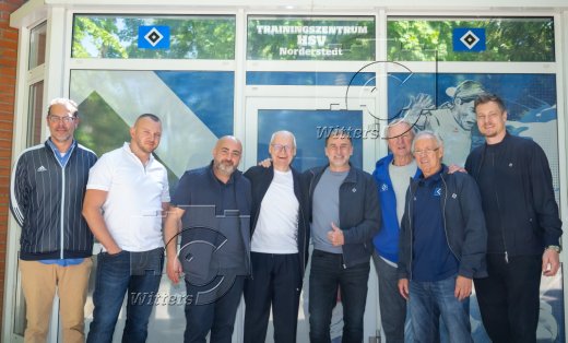 v.l. Sven Marr (Administrativer Leiter NLZ), Hermann Schulz (Leiter Infrastruktur HSV e.V.), Kumar Tschana (Geschaeftsfuehrer, Fussball Hamburger SV e.V.), Praesident Marcell Jansen (HSV e.V.), Vizepraesident Bernd Wehmeyer (HSV. e.V.), Selim Nallar (Logoo-Logistik GmbH), Stefan Kuntz (Vorstand Sport, HSV), Horst Hrubesch (Direktor Nachwuchs, HSV), Michael Voloschin