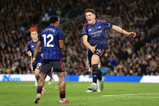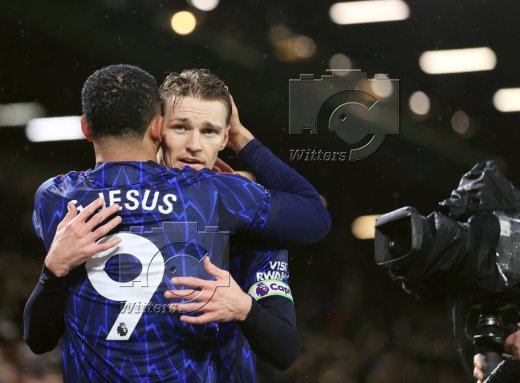 0:4 Tor, Jubel, v.l. Torschuetze Gabriel Jesus, Martin Oedegaard (Arsenal)