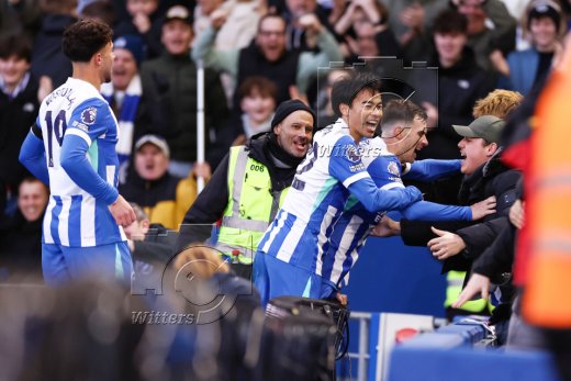 2:0 Tor, Jubel, v.l. Amad Diallo, Bryan Mbeumo, Torschuetze Matheus Cunha (Manchester)