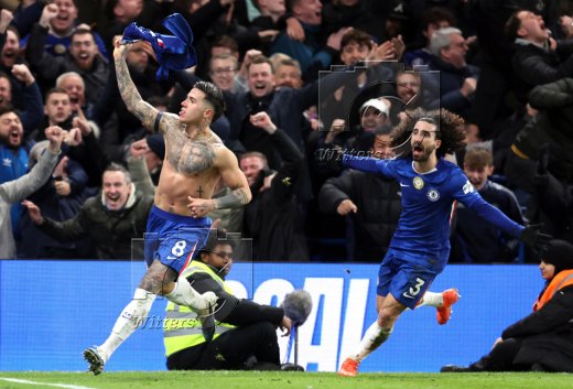 3:2 Tor, Jubel, v.l. Torschuetze Enzo Fernandez, Marc Cucurella (Chelsea)