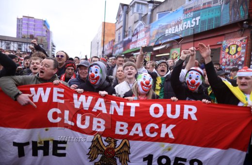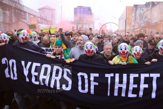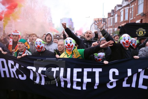 Fans Manchester, Protest gegen die Investoren-Familien Glazer, die seit 20 Jahren Eigentuemerin des Klubs ist