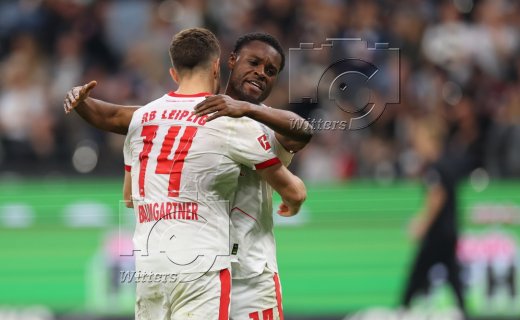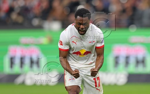 Schlussjubel v.l. Yan Diomande, Brajan Gruda (Leipzig)