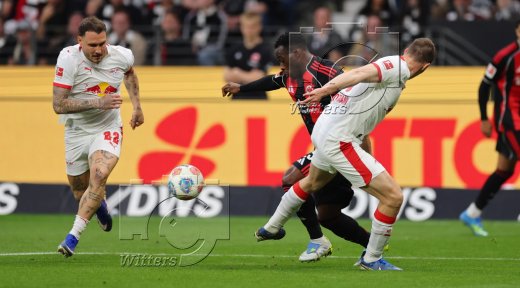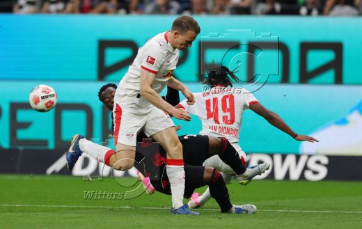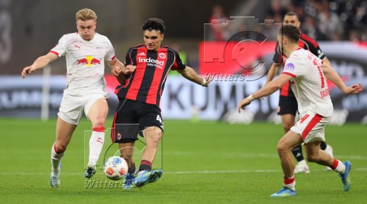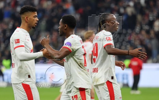 v.l. Yan Diomande, Lukas Klostermann, Arnaud Kalimuendo (Frankfurt)
