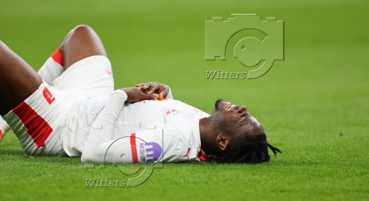 1:2 Tor, Jubel durch Torschuetze Antonio Nusa (Leipzig) v.l. Yan Diomande, El Chadaille Bitshiabu, Max Finkgraefe, Nicolas Seiwald (Leipzig)