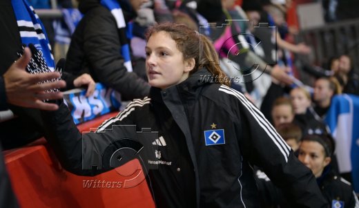 Lotta Wrede (HSV) nach Spielende bei den Fans