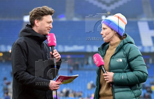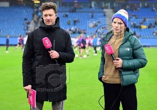 v.l. Moderator Simon Koepfer (Magenta Sport), TV-Expertin Tabea Kemme