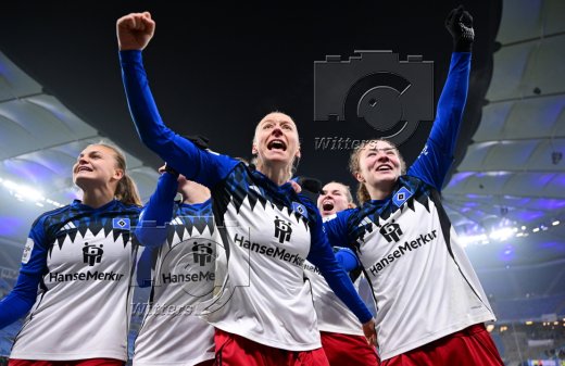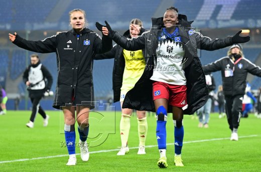 Schlussjubel v.l. Gloria Sliskovic, Magou Doucoure (HSV)