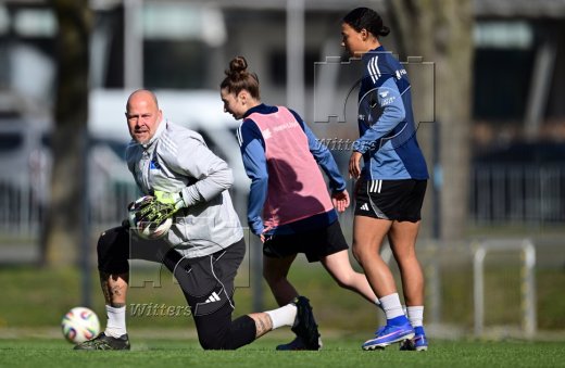 v.l. Torwarttrainer Sascha Kirschstein, Michela Croatto, Melina Krueger