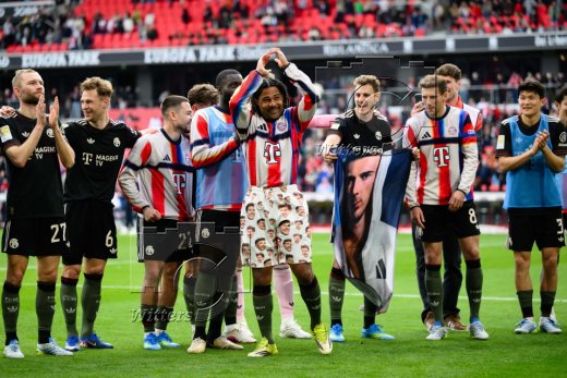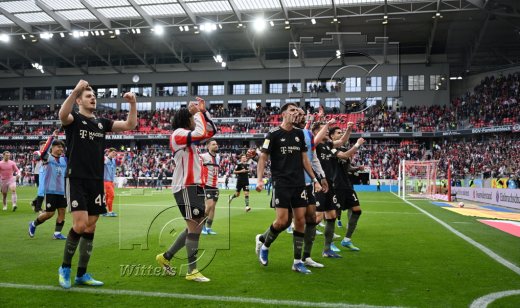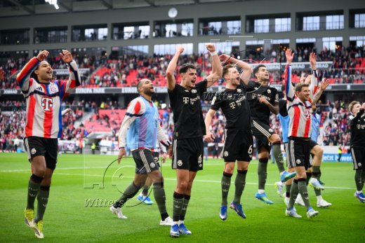 Schlussjubel v.l. Serge Gnabry, Jonathan Tah, Aleksandar Pavlovic, Joshua Kimmich, Luis Diaz, Leon Goretzka (Bayern)