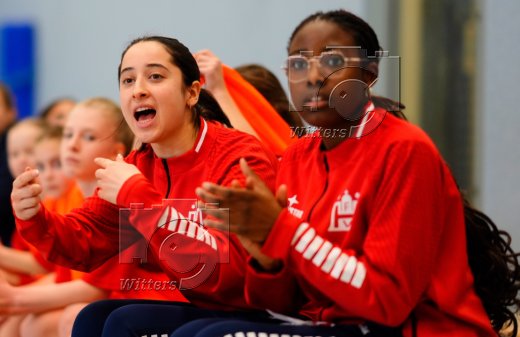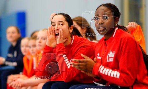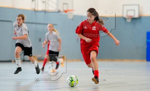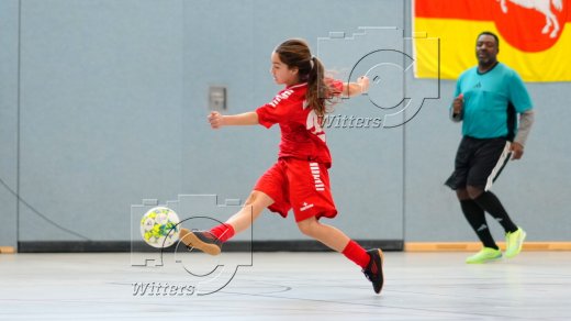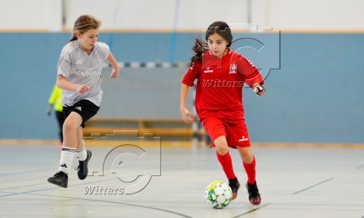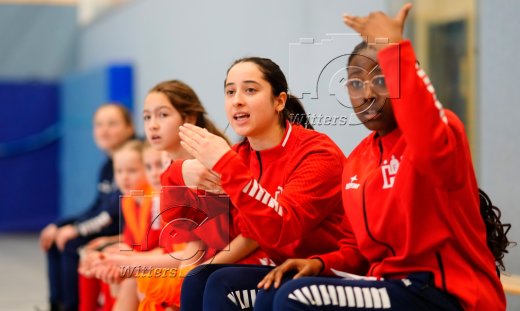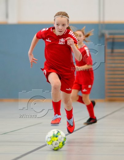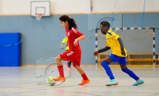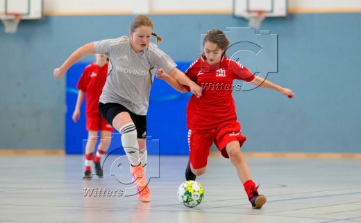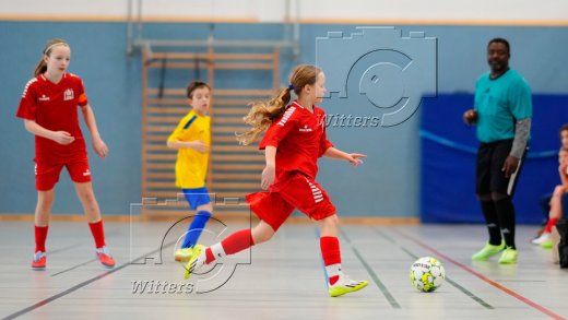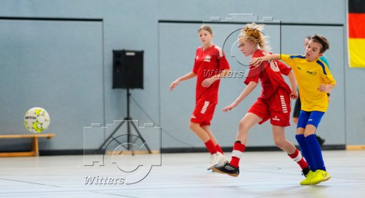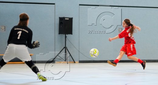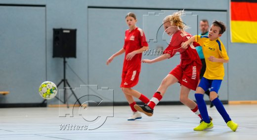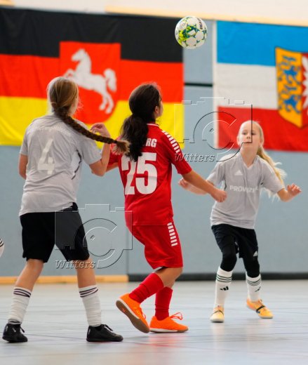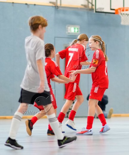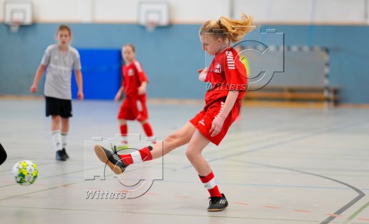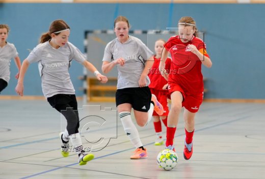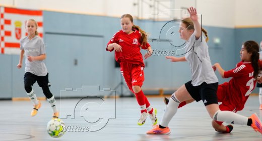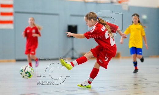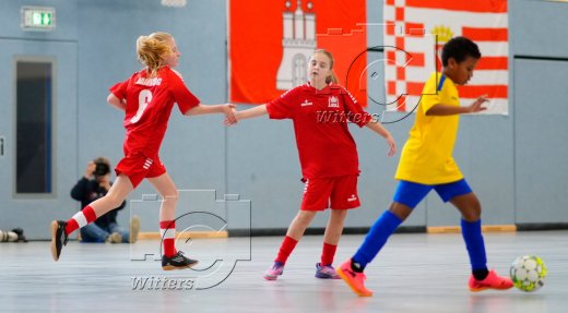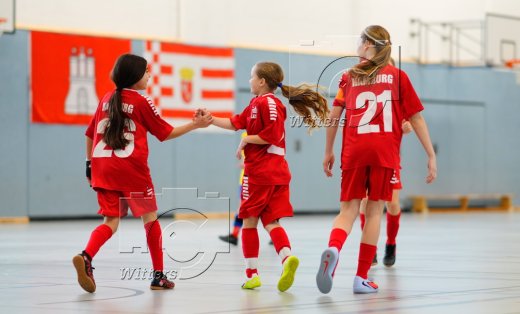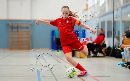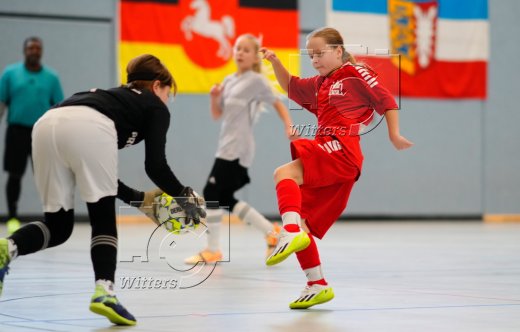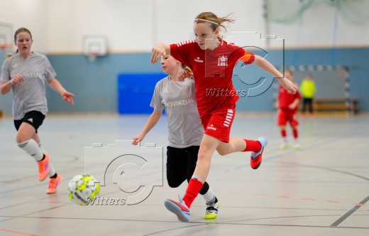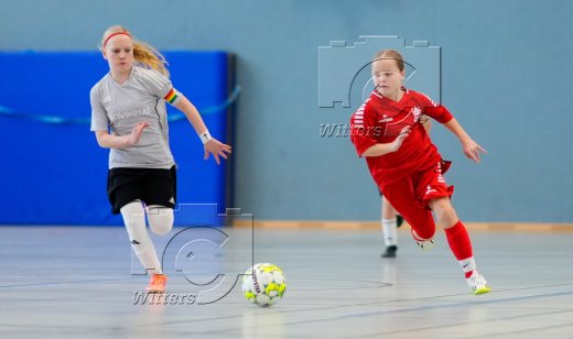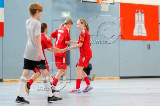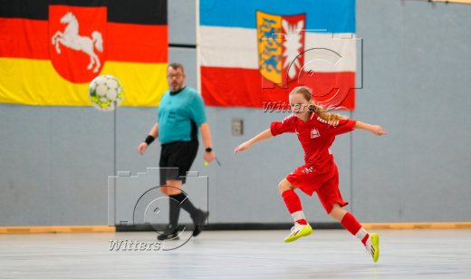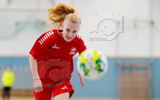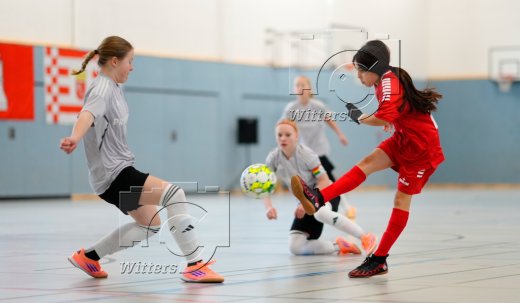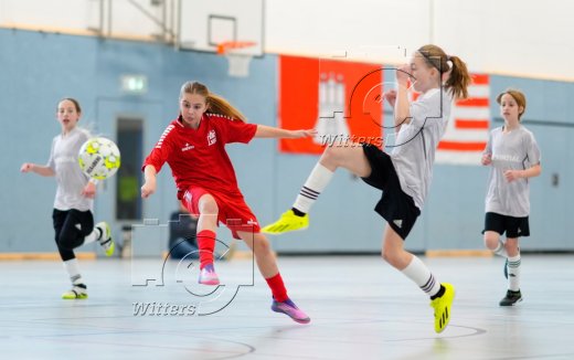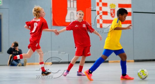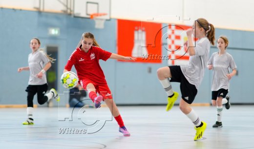 Pinneberg, 14.02.2026, Futsal, Norddeutscher Fussball-Verband NFV, Turnier U12 Maedchen, Schleswig-Holsteinischer FV (weiss) - Hamburger FV (rot)