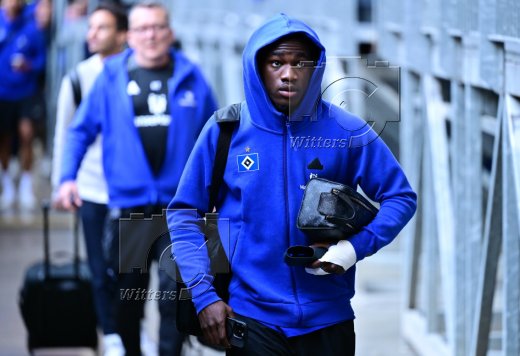 v.l. Ransford-Yeboah Koenigsdoerffer, Dennis Hadzikadunic, Mannschaftsarzt Dr. Wolfgang Schillings, Robert Glatzel, Torwarttrainer Sven Hoeh, Trainer Merlin Polzin, William Mikelbrencis, Co-Trainer Loic Fave, Adam Karabec, Torwart Daniel Heuer Fernandes (HSV)