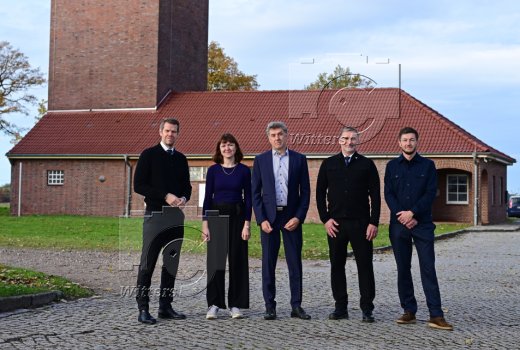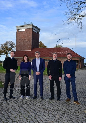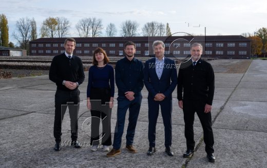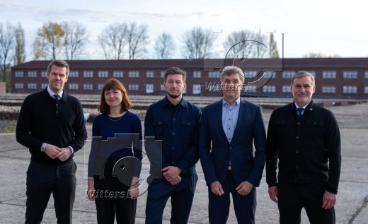 v.l. Cornelius Goebel (Direktor Fans, Kultur und Nachhaltigkeit, HSV), Dr. Eric Huwer (Vorstand Finanzen, HSV), Stefan Kuntz (Vorstand Sport, HSV), Prof. Dr. Oliver von Wrochem (Leitung KZ-Gedenkstaette Neuengamme), Paula Scholz (KZ-Gedenkstaette Neuengamme, Studienzentrum)