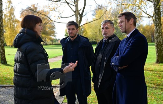 v.l. Cornelius Goebel (Direktor Fans, Kultur und Nachhaltigkeit, HSV), Stefan Kuntz (Vorstand Sport, HSV), Dr. Eric Huwer (Vorstand Finanzen, HSV), Paula Scholz (KZ-Gedenkstaette Neuengamme, Studienzentrum)