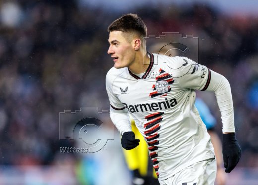 v.l. Adam Hlozek (Leverkusen), Mikkel Rygaard Jensen