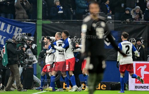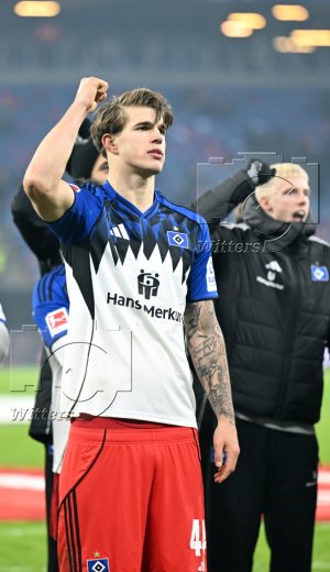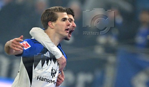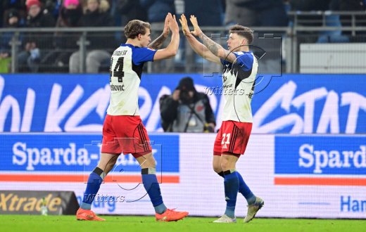 Schlussjubel v.l. Luka Vuskovic, Nicolai Remberg (HSV)