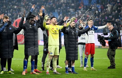 Schlussjubel v.l. Louis Lemke, Bakery Jatta, Torwart Daniel Heuer Fernandes, Fabio Vieira, Daniel Elfadli (HSV)