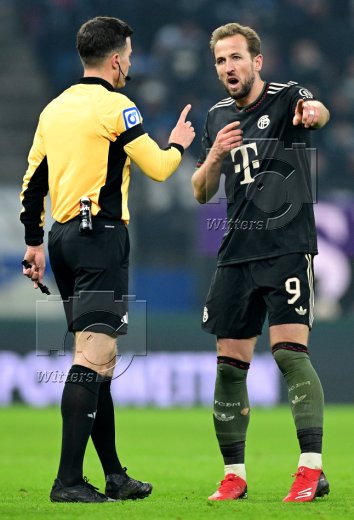 v.l. Schiedsrichter Harm Osmers, Harry Kane (Bayern)