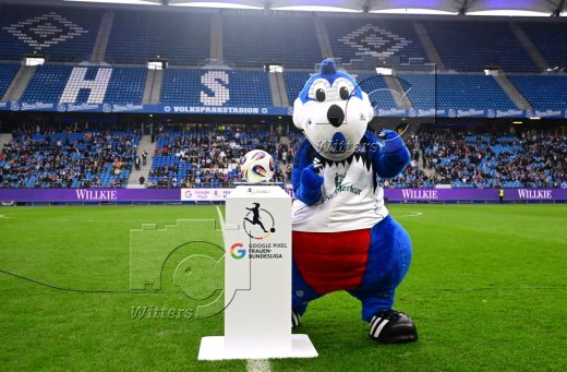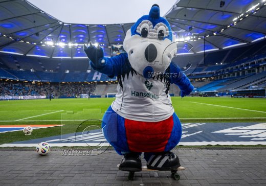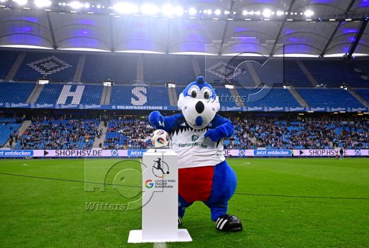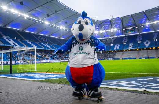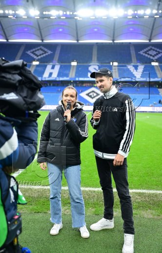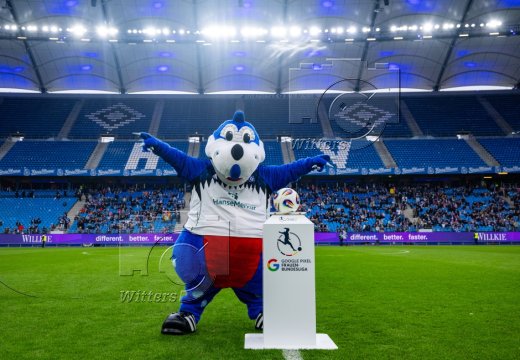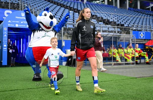 Auflaufen v.l. Maskottchen Dino Hermann, Victoria Schulz (HSV)