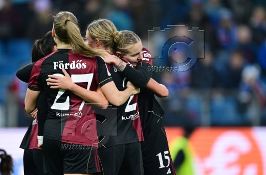 Schlussjubel v.l. Beatrix Foerdoes, Klara Svensson Senelius, Oliwia Wos (Nuernberg)