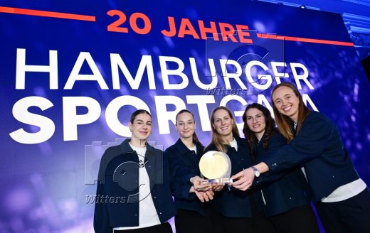 Ehrung Team des Jahres, Gewinner Team Hamburger SV (Herren und Damen), v.l. Leni Eggert, Emilia Hirche, Torfrau Inga Schuldt (HSV), Pauline Machtens, Victoria Schulz