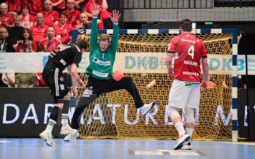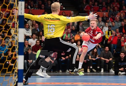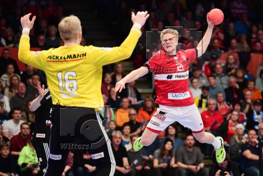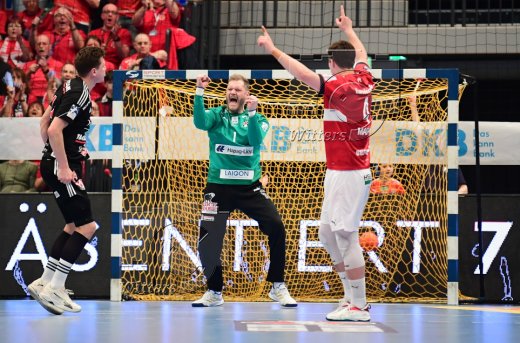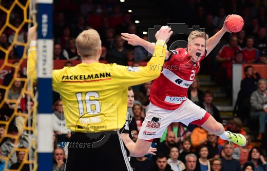 v.l. Torwart Michael Obling (Erlangen), Frederik Bo Andersen (Hamburg)