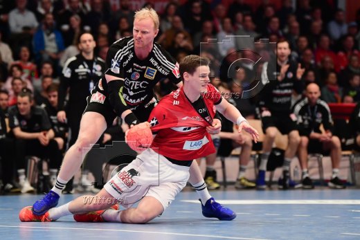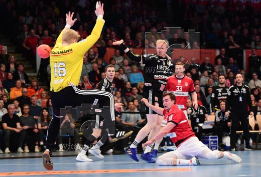 v.l. Torwart Bertram Obling (Erlangen), Frederik Bo Andersen (Hamburg)