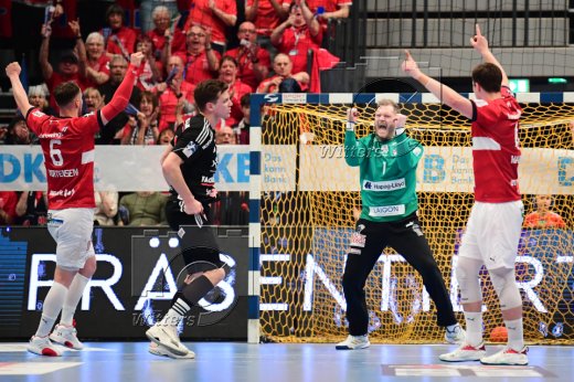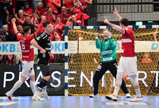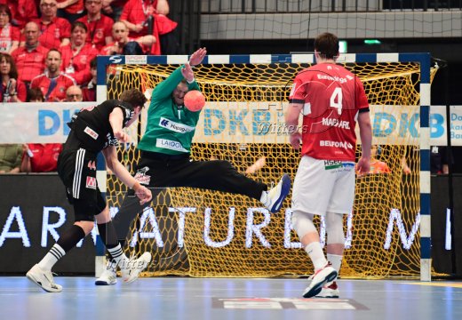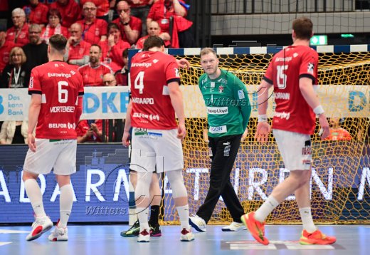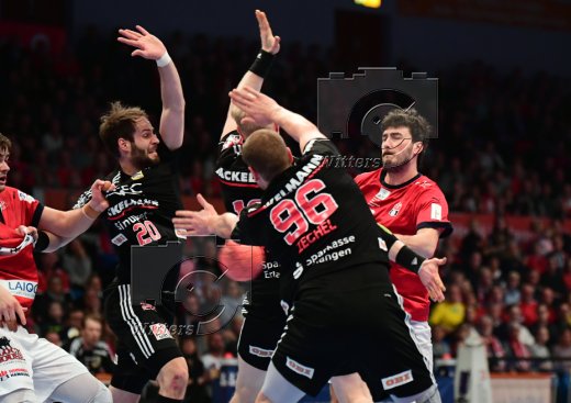 v.l. Casper Mortensen, Christoph Steinert (Erlangen), Torwart Johannes ''Jogi'' Bitter (Hamburg), Andreas Magaard