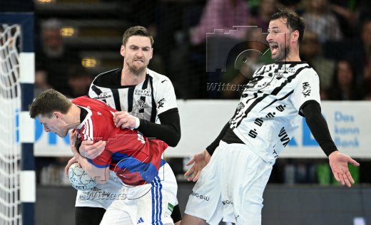 v.l. Moritz Sauter, Andreas Magaard (Hamburg), Domagoj Duvnjak