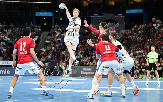 v.l. Hendrik Pekeler, Nicolai Jorgensen (Hamburg), Torwart Gonzalo Perez de Vargas (Kiel)