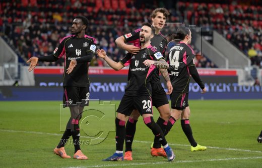 0:2 Tor, Jubel, v.l. Bakery Jatta, Fabio Vieira, Luka Vuskovic, Torschuetze Rayan Philippe (HSV)