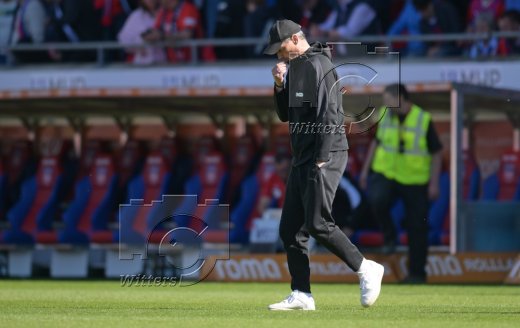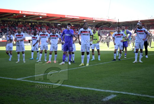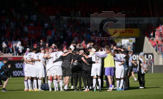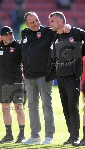 Schlussjubel, v.l. Trainer Frank Schmidt (Heidenheim), Co-Trainer Dieter Jarosch